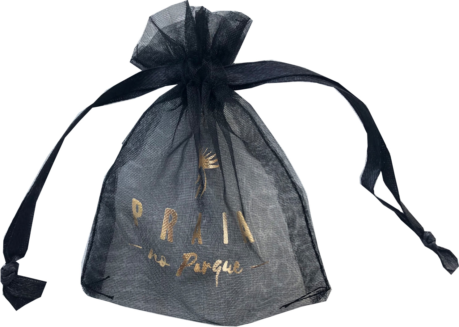 Black print ribbon organza bag